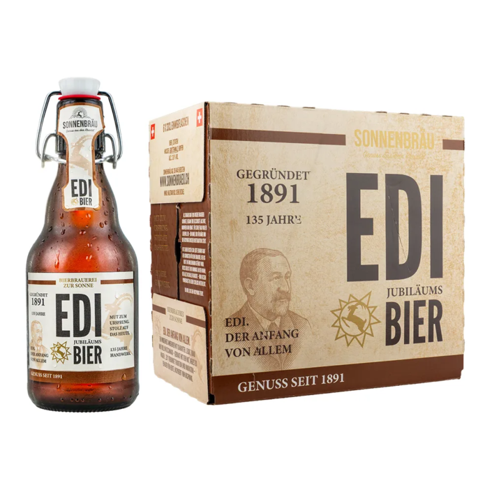Edi. Der Anfang von allem. Ein modernes Amberbier mit Charakter. Leicht, rund und voll im Geschmack – gebraut mit de Mut, neues zu Wagen. Edi verbindet Tradition und Innovation – Ein Bier für heute, inspiriert vom Ursprung. 3.8% vol. – 135 Jahre Sonnenbräu.