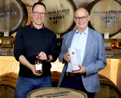 Die Swisslander-Macher Christoph Keel und Arnold Graf mit dem neuen Highlight aus dem Swisslander-Sortiment.