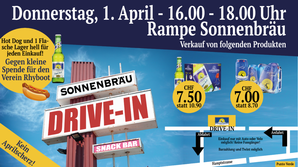 Es handelt sich um KEINEN Aprilscherz! Wir freuen uns über jeden Einkauf in der derzeit schwierigen Situation und über Spenden für den Verein Rhyboot für das Gratisbier und den Hotdog. Daher verzichten wir in diesem Jahr auf einen Aprilscherz!